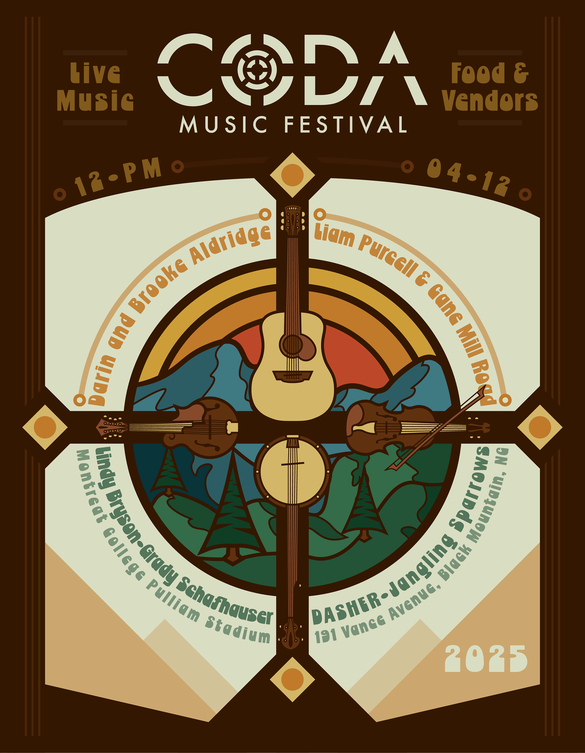 Working with the Music Business department of Montreat College, this branding suite combined the bright cheeriness of music festivities with the southern folksy charm of the Blue Ridge Mountains and Appalachian culture.